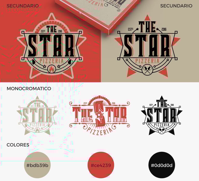 Diseño de brandboard de The Star Pizzeria.
